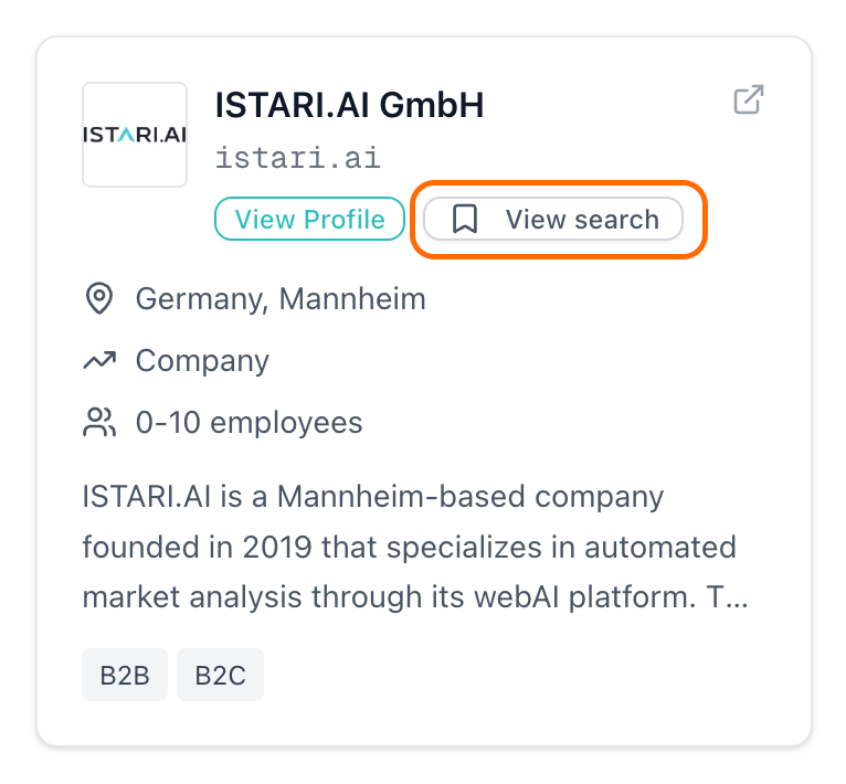 Search by description: Introduced smart search capability allowing users to describe companies they're looking for instead of relying solely on keywords. Simply enter descriptions like "Quantum computing companies" or "Quantencomputing-Unternehmen, die KI nutzen" to find relevant organizations.
